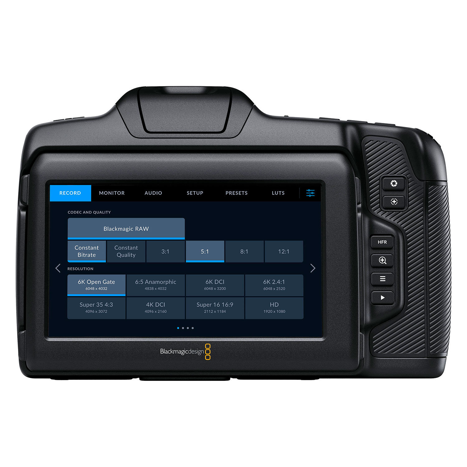 Omdat het een geavanceerde digitale filmcamera is, is de sensor ontworpen om thermische ruis te verminderen, waardoor schonere schaduwen en een hogere ISO mogelijk zijn. Bovendien maakt het grote 5-inch LCD-scherm het mogelijk om perfecte scherpstelling te krijgen bij 4K- en 6K-resoluties.