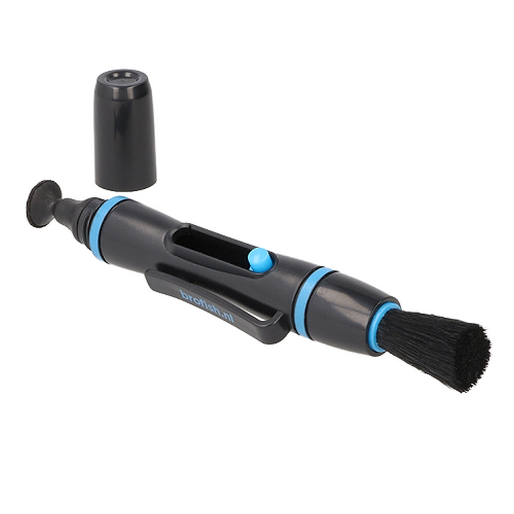 Aan de ene kant bevindt zich een superfijne borstel waarmee u in een oogwenk stof en vuil van de lens verwijderd. De reinigingskop die andere kant van de Brofish Lenspen zit, is gevuld met reinigingsmiddel om zonder problemen vetvlekken als sneeuw voor de zon te laten verdwijnen. U hoeft alleen maar de dop van de pen te halen en u verwijdert iedere vetvlek door lichtjes over de lens van uw objectief te draaien.