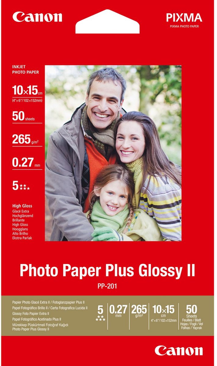 Canon’s Photo Paper Plus Glossy II (Professioneel glanzend fotopapier II) is het perfecte fotopapier voor superieure kwaliteit fotoprints met een glanzende afwerking.Dit hoogwaardige papier is perfect voor digitale foto’s en extra prints.