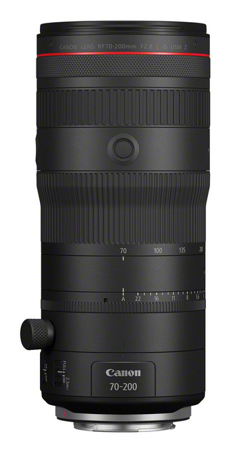 eerder dit jaar werd uitgebracht. In tegenstelling tot de witte RF 70-200mm f/2.8 die in lengte verandert tijdens zoomen, heeft de nieuwe zwarte RF 70-200mm Z interne zoom.