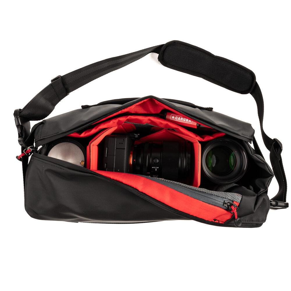 Het hoofdcompartiment van de Caruba Compex Chase 200 is uitgerust met uitneembare origami dividers. Dit unieke ontwerp zorgt ervoor dat je de binnenruimte van de tas naar wens kunt indelen, waardoor je nog meer spullen mee kunt nemen. Of je nu extra lenzen, een flitser of andere accessoires wilt meenemen, deze dividers maken het mogelijk om alles veilig en georganiseerd op te bergen.