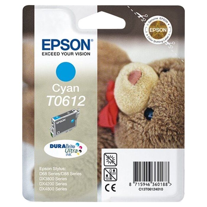 De originele Epson T0612 inktcartridge cyaan bevat 8 ml.