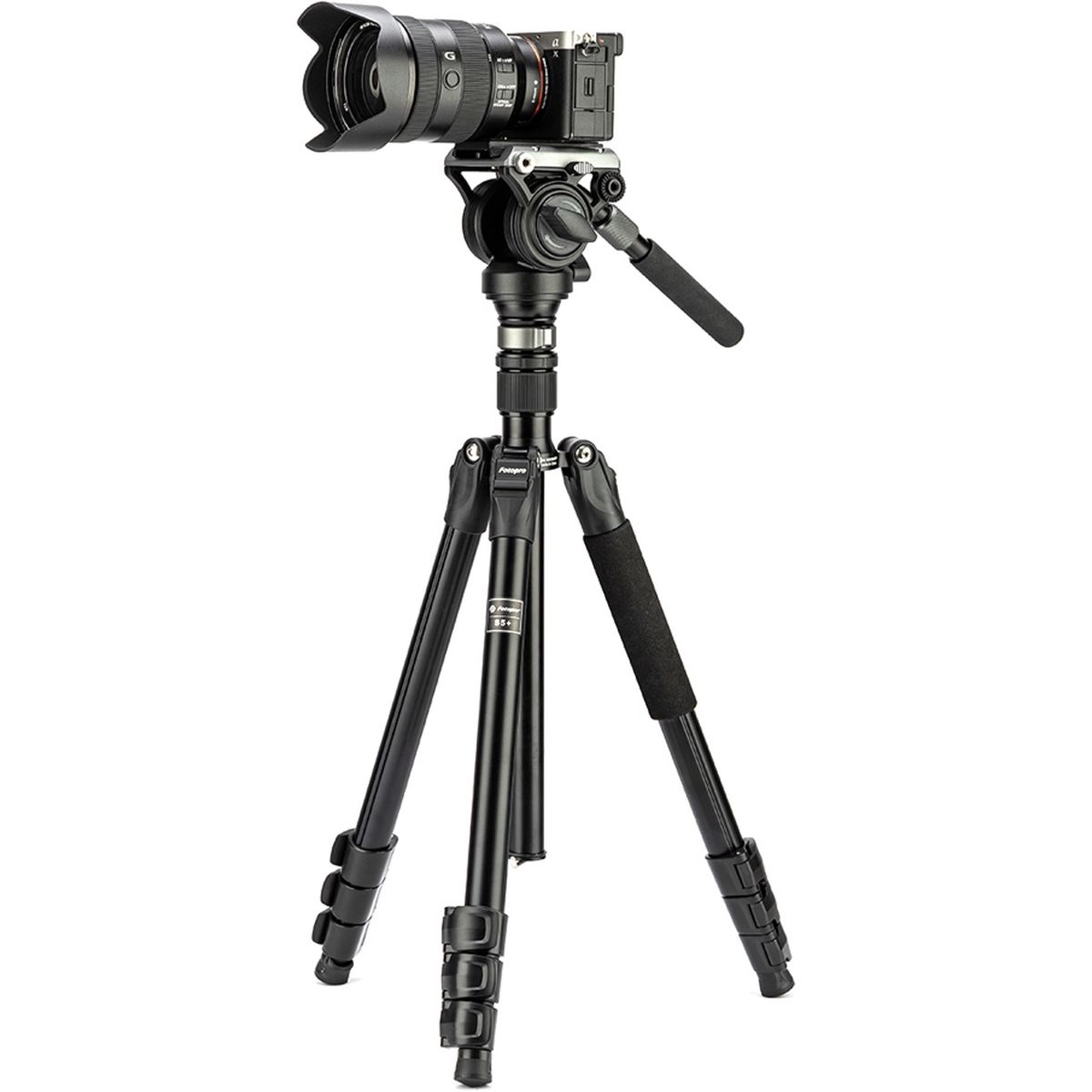 De olie-gedempte videokop van het Fotopro S5i Pro-statief heeft twee assen om te verstellen (kantelen en pannen). Beide hebben onafhankelijke vergrendelingen, dit voorkomt het per ongeluk bewegen over de verkeerde as. De kop is over 165§ te verstellen (75§ omhoog en 90§ omlaag). De weerstand van de beweging is instelbaar aan het gewicht van je apparatuur. De lange handgreep met antislipgrip is aan de linker- en rechterkant van de kop te monteren en helpt je de bewegingen van je camera of camcorder nauwkeurig te beheren. Natuurlijk is de kop voorzien van een snelkoppeling zodat je snel en veilig je camera (de)monteert.