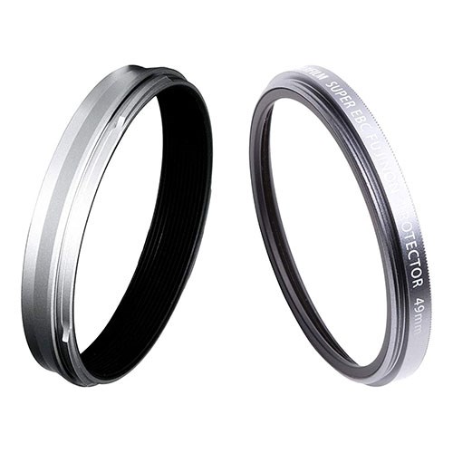 Deze set bestaat uit een AR-X100 adapter ring en een PRF-49 Protective filter. De adapter ring vervangt de ring die standaard op de lens van de Fujifilm X100V of X100VI bevestigd is. De adapter ring heeft een 49mm schroefdraad waar je het beschermende filter op bevestigt. Met deze set bescherm je niet alleen je lens, maar wordt je Fujifilm X100V of X100VI volledig weerbestendig.