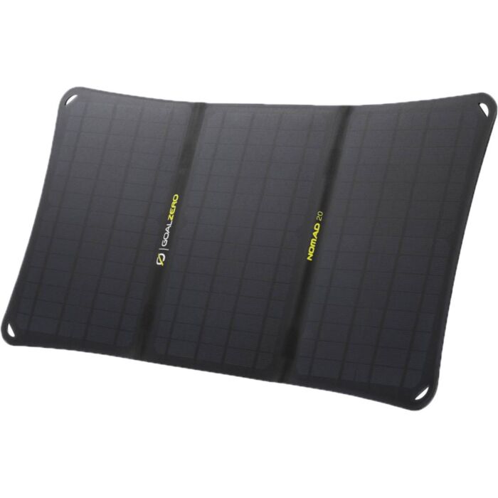 Nomad 20 is ontworpen voor een meer naadloze lading van zonne-energie en heeft een ingebouwd Goal Zero Flip-dock en een verstelbare standaard die op zijn plaats klikt en vergrendelt voor meer stabiliteit.
