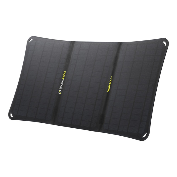Nomad 20 is ontworpen voor een meer naadloze lading van zonne-energie en heeft een ingebouwd Goal Zero Flip-dock en een verstelbare standaard die op zijn plaats klikt en vergrendelt voor meer stabiliteit.