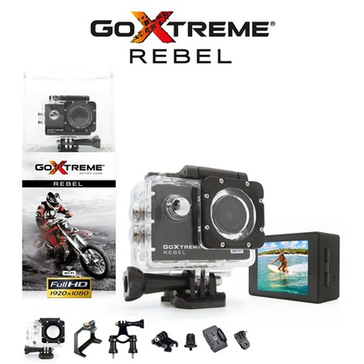De GoXtreme Rebel is een schitterende actioncam voor een mooie betaalbare prijs. De camera beschikt over een beeldhoek van 140 graden en filmt in Full HD bij 30 fps door middel van geïnterpoleerde beelden. Met de waterproof case kan je tot een diepte van 30 meter onder water filmen.