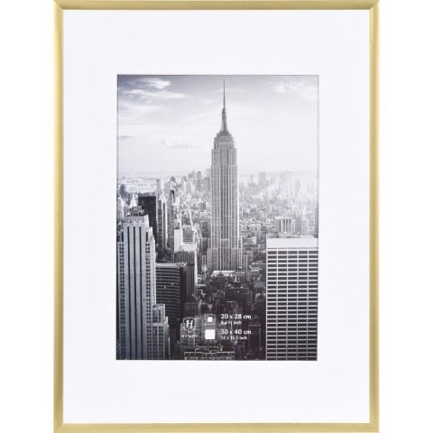 De Henzo Manhattan fotolijst 30 x 40 centimeter goud is een fotolijstje die je op een stijlvolle manier ergens kunt neerzetten of kunt ophangen. Het neerzetten wordt mogelijk gemaakt met behulp van de steun die aan de achterkant gemonteerd is. Als je de lijst wilt ophangen aan de muur, dan kan dat horizontaal of verticaal gedaan worden. Dit artikel open je door de achterkant te verwijderen zodat je een foto in de Henzo Manhattan fotolijst 30 x 40 centimeter goud kunt doen. Je hebt standaard beschikking over een passe-partout die bedoeld is voor een foto van 20 bij 28 centimeter of je kunt zonder passe-partout een afbeelding plaatsen van maximaal 20 bij 28 centimeter. De rand van het artikel is gemaakt van aluminium.