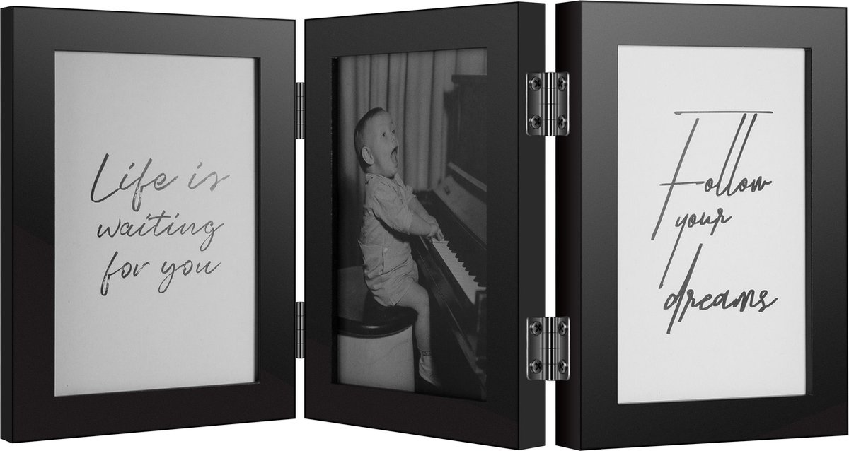 Deze Henzo collagelijst is geschikt voor 3 foto’s van 10 x 15 cm. Er wordt geen passe-partout meegeleverd. Je kan de lijst zowel ophangen als staand neerzetten. De lijst kan in portretformaat of landschapsformaat aan de muur worden gehangen of op een kast worden gezet. De lijst zelf is gemaakt van hoogwaardig MDF en is beschikbaar in de kleuren wit, naturel en zwart.