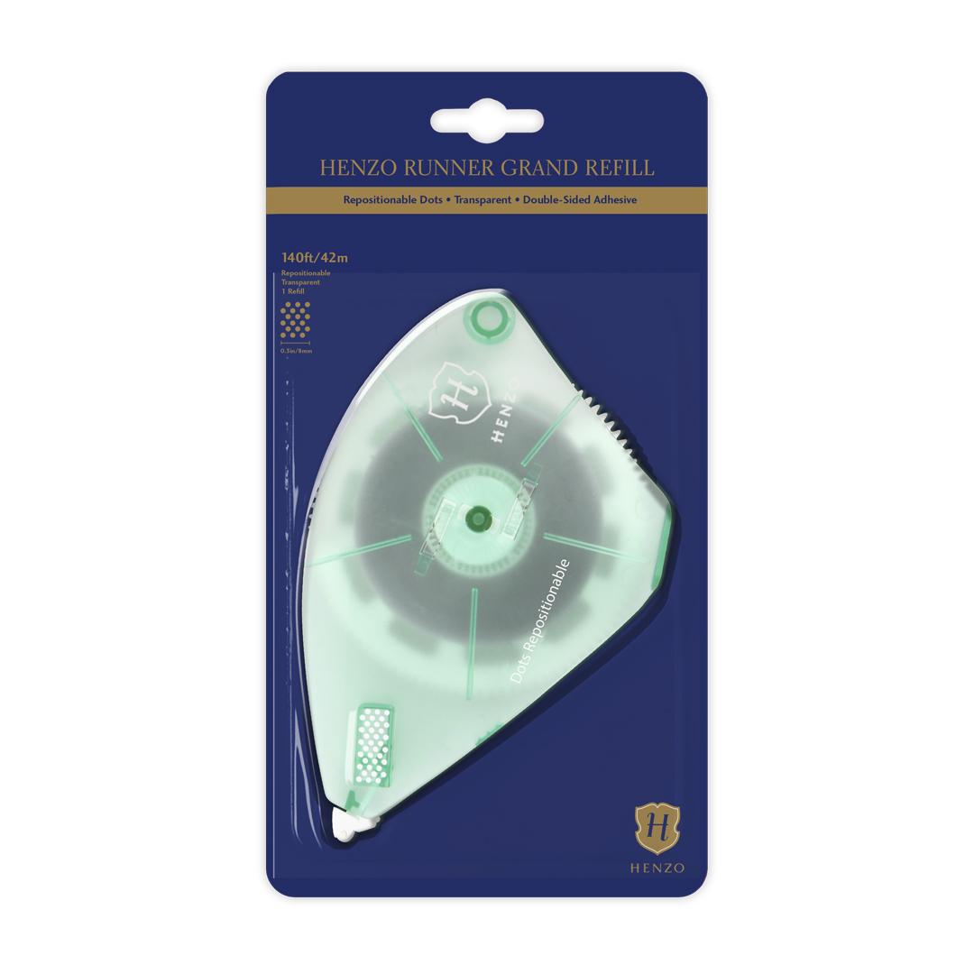 Deze Henzo Taperunner Grand navulling 45 meter transparant is bedoeld om een lege taperunner op te vullen. De tape is aan beide kanten voorzien van zelfklevend materiaal. Daardoor kan de tape aan de achterkant van foto’s worden geplakt zodat deze vervolgens eenvoudig en stevig op een bladzijde van een fotoboek geplaatst kunnen worden. Deze cassette bevat stippen lijm die verplaatsbaar en verwijderbaar zijn. Verplaats het gelijmde zonder aanbrengen van nieuwe lijm. Verplaatsbare punten blijven staan totdat u het item verwijdert en zal zich hechten op een nieuwe plaats zonder dat het schade veroorzaakt aan foto’s of documenten. Verwijder de lijm met een beweging met vingers. Perfect voor gebruik door kinderen. Om na te vullen: verwijder de beschermende neuskap, druk op de onderste naad om de behuizing te openen, til de gebruikte cartridge op, plaats de nieuwe navulpatroon, lijn de behuizing uit en sluit de behuizing. Recycle de gebruikte cassette. Dit artikel is alleen bedoeld ter navulling van een lege taperunner om foto’s mee te plakken.
