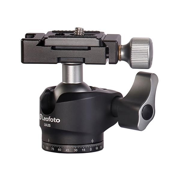 Het LH-25 balhoofd is eenvoudig en snel in gebruik. Met de verstelvleugel aan de zijkant van de kop bedien je de horizontale verstelling van de gehele kop, die 360 graden rond kan draaien. Dankzij de inkeping onder de kogel kun je razendsnel switchen van landscape- naar portrait mode! Dit doe je eenvoudig door de vleugel naar voren te trekken en de positie aan te passen. Met behulp van de gradenschaal op de statiefplaat is de LH-25 zeer precies te positioneren.