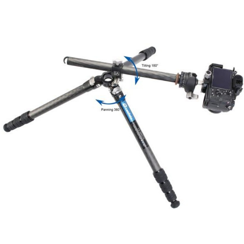 Het 284CVL statief uit de Leofoto Ranger Serie is dankzij de kantelbare middenzuil in het bijzonder geschikt voor macrofotografie. Je schuift de middenzuil in de manchet voor normaal gebruik, maar je kunt hem ook ondersteboven monteren om vlak boven de grond te werken. Draai je de klemschroef van de manchet los, dan kun je de middenzuil maximaal 180 graden kantelen en 360 graden draaien, waardoor je deze horizontaal kunt gebruiken voor moeilijk bereikbare plaatsen. Ideaal voor macrowerk en close-ups in de vrije natuur! De middenzuil heeft een 3/8-inch statiefschroef waarop je een losse statiefkop naar wens kunt bevestigen. Wie extra stabiliteit wil, kan aan de haak onderaan de middenzuil een contragewicht bevestigen. Aan deze haak kun je een cameratas hangen, maar bijvoorbeeld ook een zak met stenen.