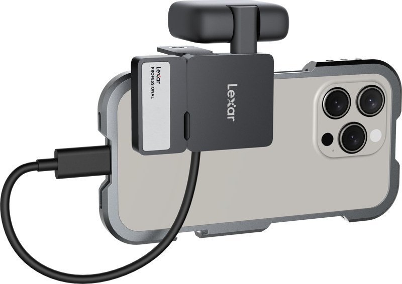 De innovatieve Lexar Professional Go Portable SSD met hub is een revolutionaire storage-oplossing voor iPhone 15 Pro/Pro Max of iPhone 16 Pro/Pro Max waarmee je de SSD los kunt gebruiken voor ongeëvenaarde vrijheid en draagbaarheid, of met de hub om randapparatuur toe te voegen zoals verlichting, microfoons, powerbanks en nog veel meer. Met een gewicht van slechts 13 gram en een capaciteit van 1TB of 2TB levert de krachtige SSD USB 3.2 Gen 2-prestaties van 1050 MB/s lezen, 1000 MB/s schrijven om naadloze ProRes 4K 60 fps video-opnamen te maken vanaf je iPhone 15 Pro/Pro Max of iPhone 16 Pro/Pro Max. Je kunt bovendien post-productie direct vanaf de schijf uitvoeren.