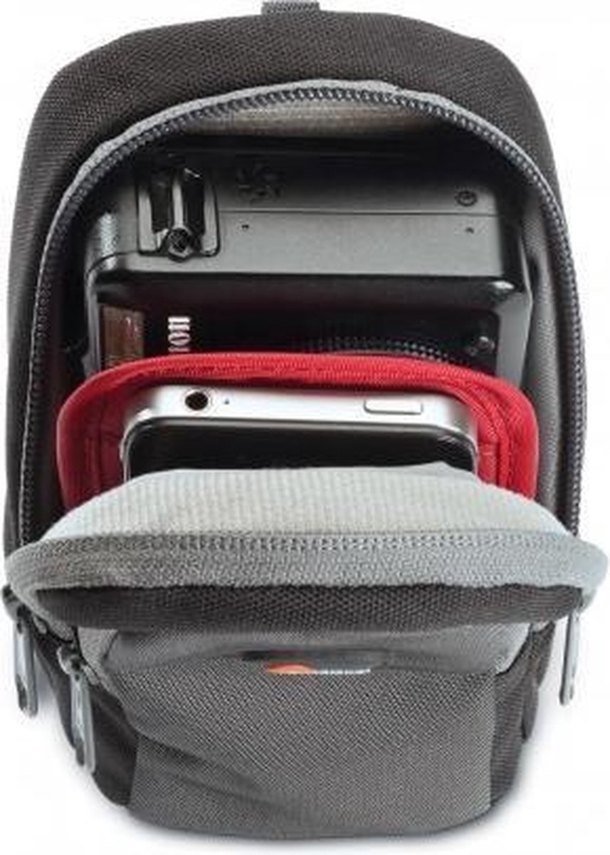 De compacte Portland 50 cameratasje biedt ruimte aan een digitale compactcamera, smartphone en een geheugenkaart of extra accu. De modern vormgegeven Portland 50 heeft een zachte, schokbestendige en beschermende zachte bekleding aan de binnenkant. Ook heeft het een scheidingswand zodat je compactcamera en telefoon niet met elkaar in contact komen. Echt een camerapouch voor allround gebruik. De Portland 50 heeft als binnenmaten 8 x 6 x 13,5cm. Dat betekent dat zonder plaatsing van een telefoon ook de wat grotere compactcamera’s van merken als Canon, Nikon, Olympus, Fujifilm, Sony en Panasonic probleemloos een plaatsje vinden in deze cameratas. Deze camerapouch is perfect geschikt om mee te nemen in een normale handtas of rugzak, maar je kunt hem ook dragen aan de ingebouwde riemlus of aan de afneembare pols.