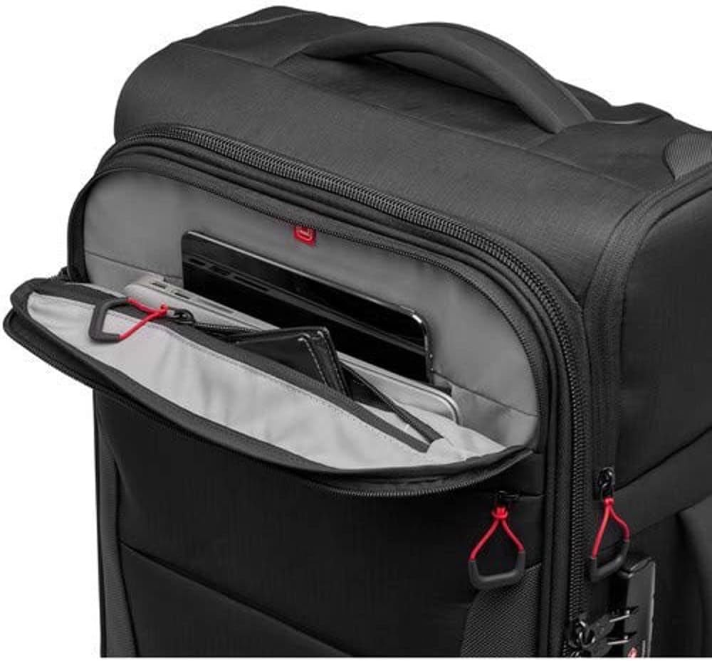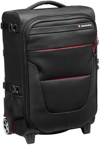 Aan de binnenkant beschermen individueel aanpasbare verdelers, die met Manfrottos Camera Protection System zijn gevoerd, de uitrusting tegen stoten en zorgen tegelijkertijd voor een effectieve vermindering van trillingen. Bovendien is de trolley uitgerust met hoogwaardige, even robuuste als soepel lopende ritssluitingen, die een snelle toegang tot de inhoud van de koffer mogelijk maken. Twee soepel lopende en duurzame wielen zorgen in combinatie met twee stabiele voetjes, versterkte hoeken en speciale beschermstrips voor een veilig transport. De Pro Light Trolley Air-55 meet 55 x 35 x 23 cm en heeft een professionele DSLR met een 400 mm lens, een tweede DSLR-behuizing en maximaal vier andere lenzen. Als alternatief kan een camcorder met lenzen en accessoires veilig worden opgeborgen.