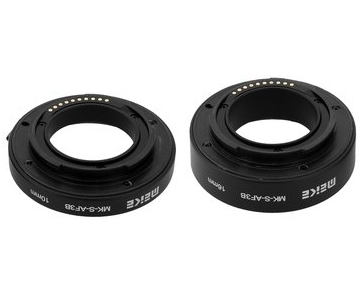 Verlengbuisset voor Sony E systeem maakt close-ups met hogere vergroting mogelijk, de buizen zijn uitgerust met elektronische contactpunten,