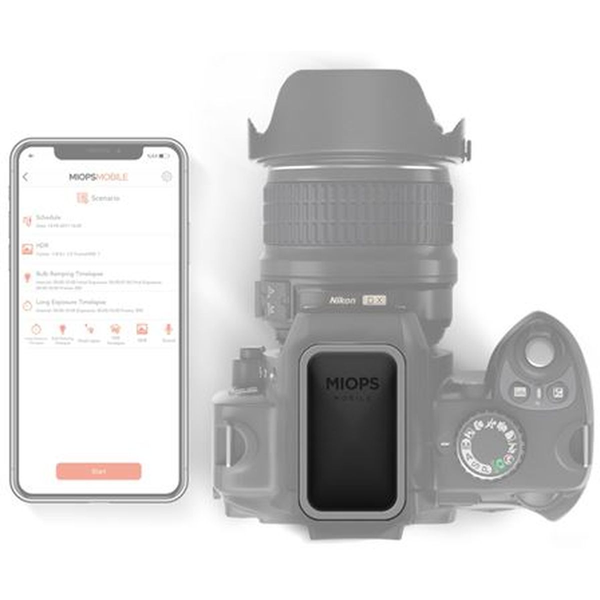De Miops Mobile app maakt het mogelijk om alle sensoren van uw smartphone te gebruiken, zoals trilling, geluid, beweging, afstand en licht. Er zijn zelfs diverse timelapse-opties, om op het perfecte moment een foto te maken. Daarnaast beschikt de Miops Mobile Plus nu ook over een ingebouwde lichtsensor, waarmee u kunt triggeren met flits en laserlicht. Middels de nieuwe Device Sound Mode triggert u daarnaast nog sneller op geluid dan via de Smartphone Sound Mode.