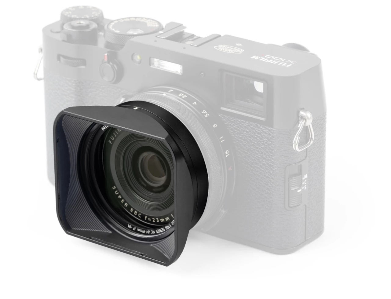 De opvallende innovatie van de JetMag-set is de magnetische zonnekap. Zodra de UV-filteradapter is geplaatst, hecht de vierkante metalen kap zich onmiddellijk met een stevige magnetische bevestiging. Het helpt strooilicht te beheersen, lensflare te verminderen en contrast te behouden, terwijl het de iconische esthetiek van de X100 aanvult.