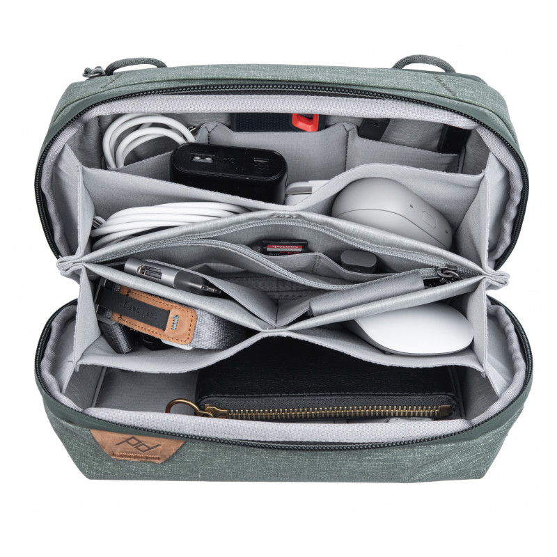 Tech Pouch biedt ongeëvenaarde organisatie en gemakkelijke toegang, of je nu kabels, dagelijkse benodigdheden of reisaccessoires opbergt. Origami-stijl zakken zorgen voor enorme ruimtelijke efficiëntie, waardoor je meer kunt inpakken in een kleinere ruimte, terwijl je items netjes georganiseerd en gemakkelijk te vinden blijven. Elastische accessoireslusjes houden items zoals pennen, messen, SD-kaarten en batterijen altijd binnen handbereik. De handvatten aan de buitenkant en de clamshell-opening maken de tas gemakkelijk vast te houden en te openen. De externe ritszak heeft een kabeldoorvoer voor eenvoudig opladen van apparaten. De 400D gerecycled nylon canvas buitenkant is weerbestendig en visueel strak.