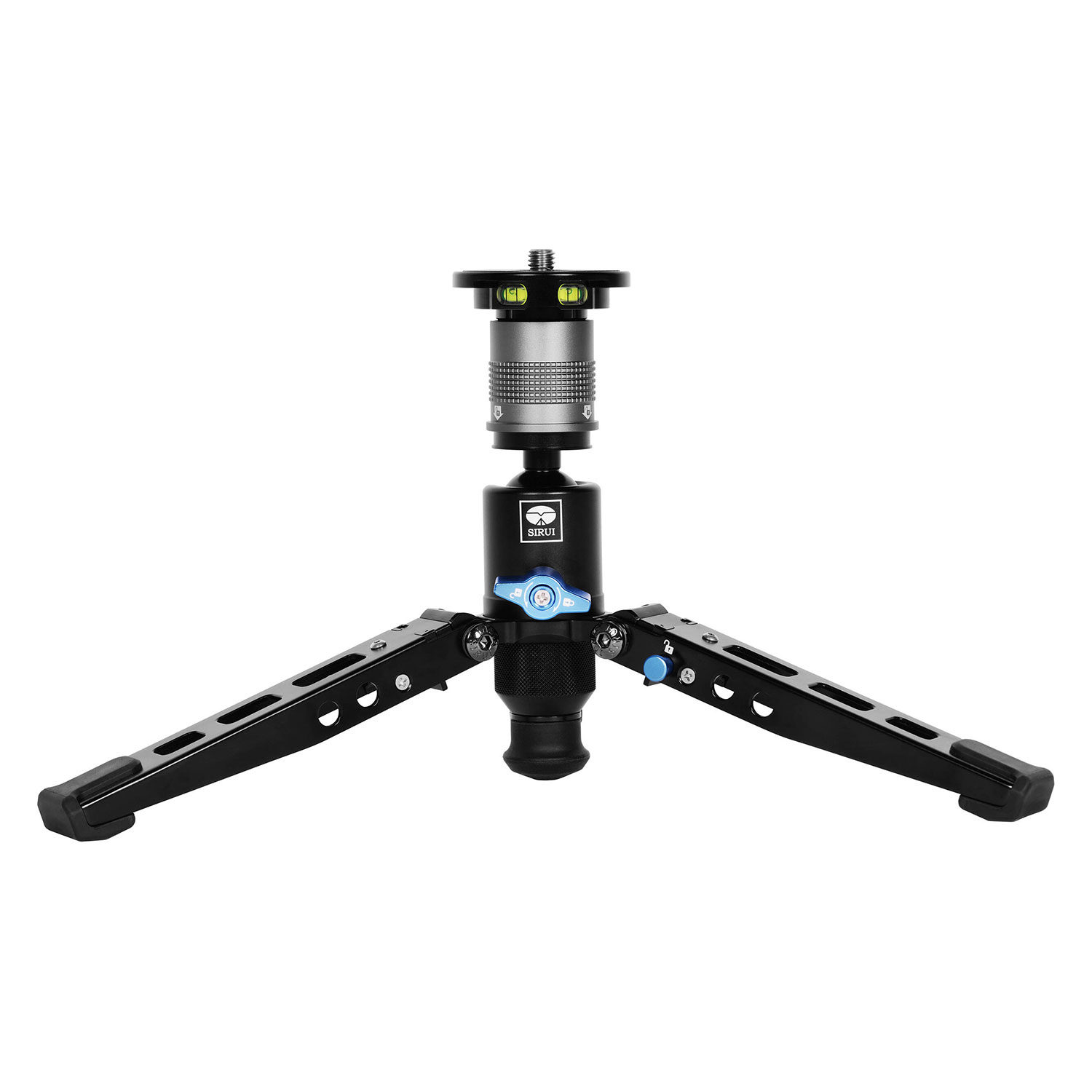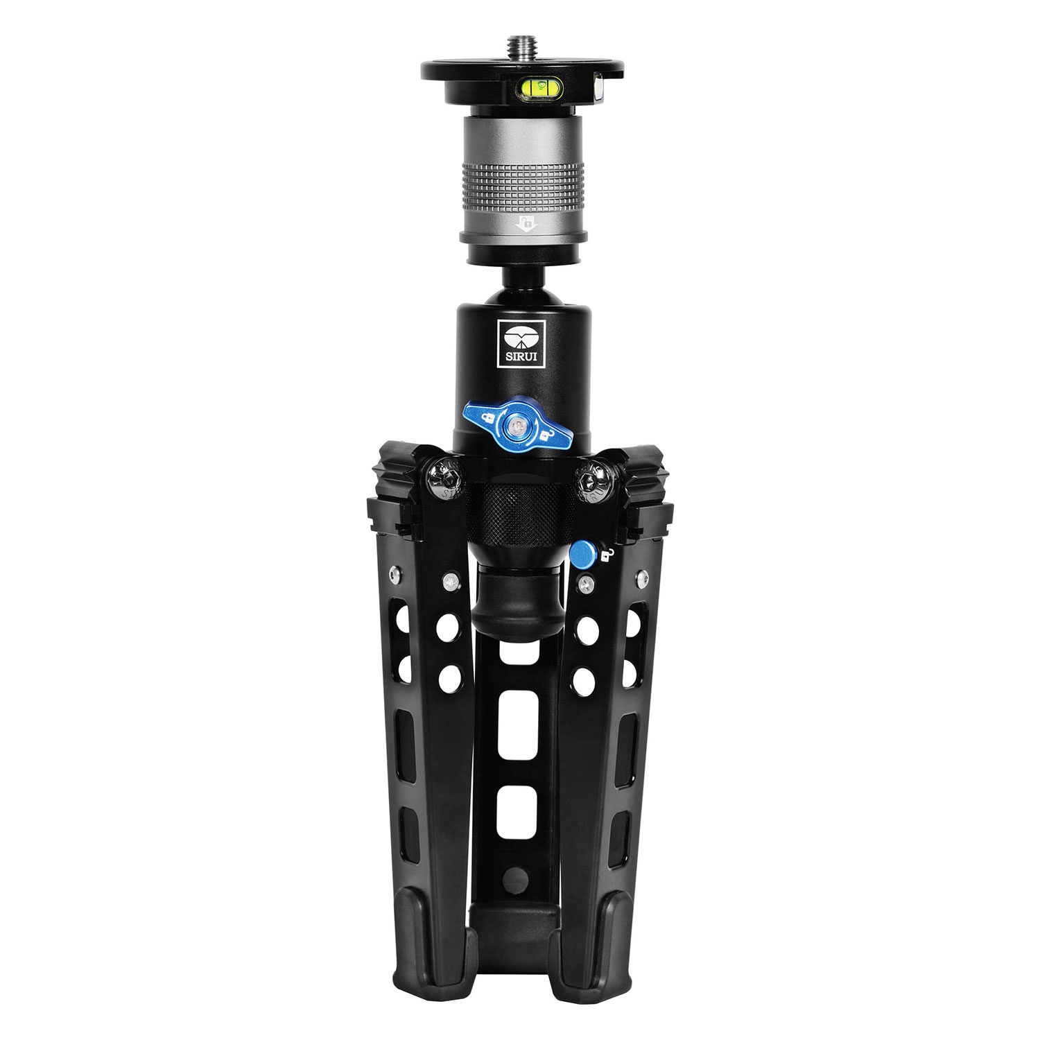 De opvouwbare statiefbasis heeft een modulaire ontvanger voor de op de statiefkop gemonteerde adapterplaat. Hierdoor ontstaat er een flexibel ministatief dat voor alles geschikt is, van macrofotografie dichtbij de grond tot online vloggen. Elke omkeerbare poot heeft een rubberen voet. Wanneer je deze openvouwt, is er een rubberen monopod voet zichtbaar met een intrekbare stalen punt voor grip op elk oppervlak.