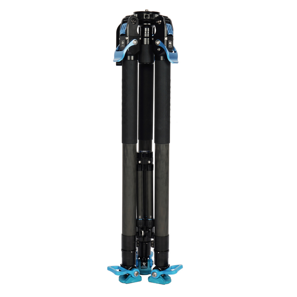 De poten van koolstofvezel en aluminium zijn voorzien van flip-lock-verbindingen, waardoor je de hoogte snel in ‚‚n stap kunt aanpassen. De mid-level spreader is eenvoudig te installeren en biedt een snelle manier om op te zetten, de hoogte aan te passen en in te klappen. Een draagriem en handgreep zijn inbegrepen om te helpen bij het opzetten en transporteren. De rubberen voetjes zorgen voor grip en de poten zijn voorzien van stalen spikes voor gebruik buitenshuis. Er wordt een draagtas meegeleverd om het statief op te bergen en te vervoeren.