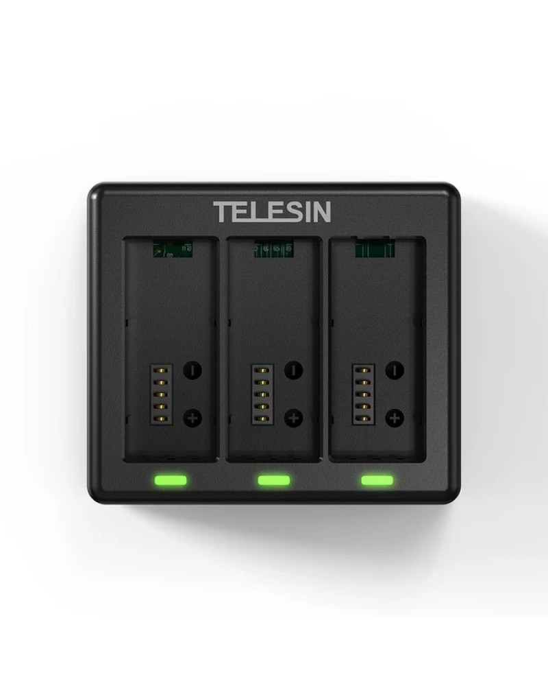 Dit is de TELESIN GP13 batterijlader, een drievoudige oplader voor GoPro Hero 13-batterijen.