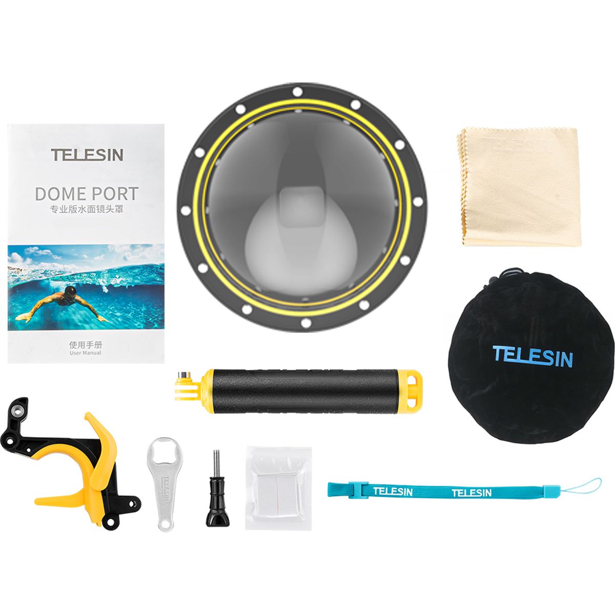 De Telesin dome wordt geleverd inclusief polspand en het handvat is tevens een drijvende bobber. Zo hoef je je geen zorgen te maken om verlies van je GoPro en kun je je volledig focussen op het maken van de mooiste (onderwater)beelden.