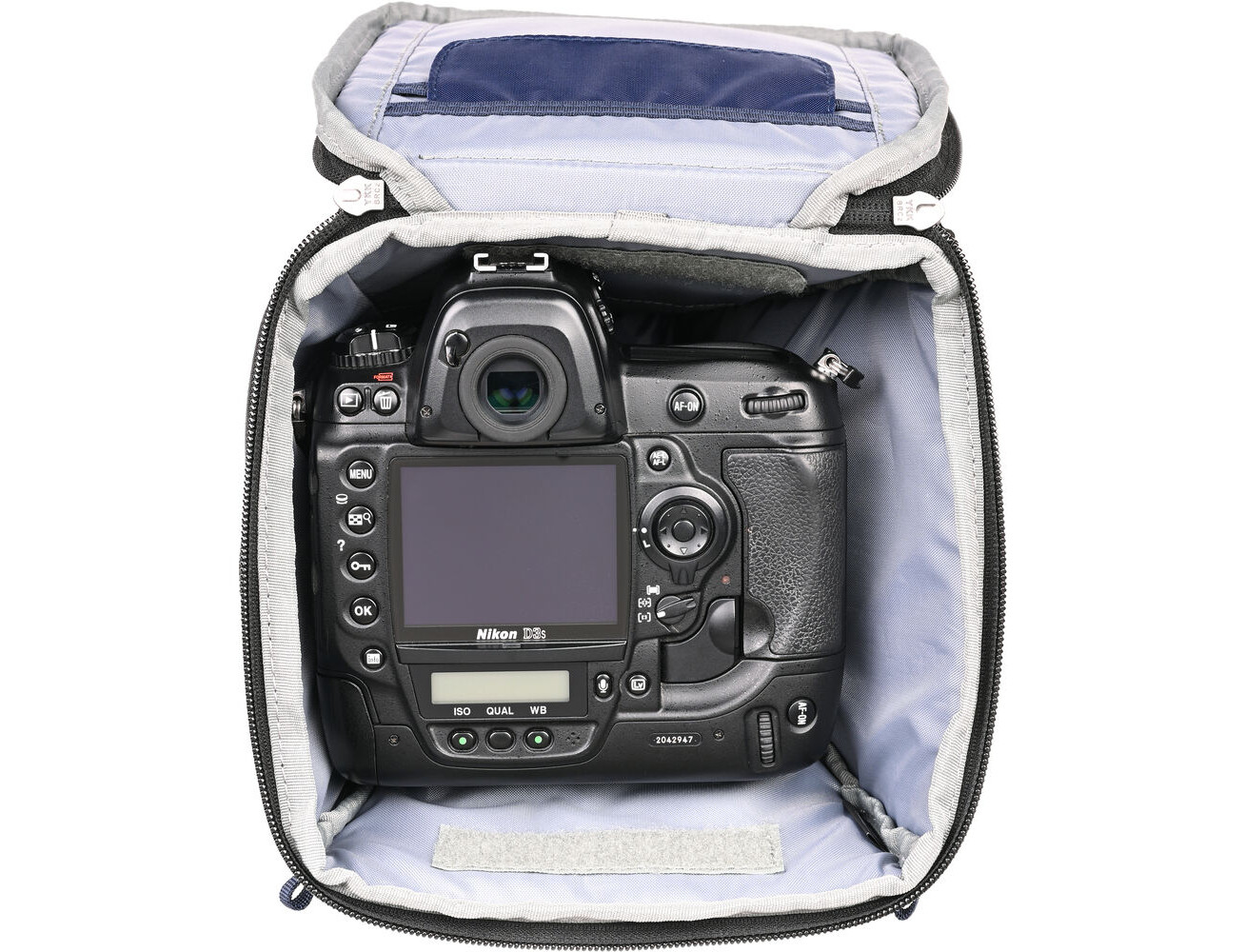 De Think Tank Digital Holster 50 V3.0 is ontworpen voor systeemcamera’s met grip en een 70-200mm f/2.8 lens, waarbij de zonneklep in schietpositie kan blijven. De binnenhoogte is verstelbaar van 28 cm tot 37,5 cm met de “pop down”-functie. Deze holster biedt uitstekende bescherming met een afneembare schouderriem, regenhoes en zachte binnenverdeling om het LCD-scherm te beschermen. Met extra opbergvakken voor accessoires is deze holster perfect voor fotografen die grote lenzen gebruiken en langdurige bescherming nodig hebben.