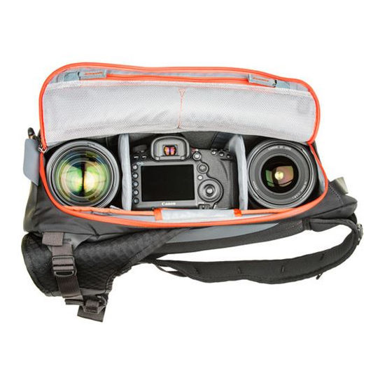 De Mindshift PhotoCross is leverbaar in drie formaten en twee kleuren, met fel oranje of steenkool grijze accenten. In de PhotoCross 13 past een DSLR zonder grip, met twee tot vier objectieven, inclusief een 70200mm f/2.8 en bijvoorbeeld een 13 Macbook.