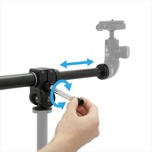 Met de Velbon V4 unit II kan je een statiefkop zijdelings uitschuiven ten opzichte van een de statiefbasis. De extensiezuil heeft een 180 graden kantelarm en een 360 graden horizontale pan. Je kan de arm in meerdere hoeken kantelen en hij is voorzien van een rubberen handvat voor een stevige grip. Met een simpele draai verstel en vergrendel je de arm eenvoudig. De extensiezuil heeft een minimumlengte van 34 centimeter en een maximale lengte van 55 centimeter. De V4 UNIT II wordt op een statief bevestigd via een ¼”-20 bevestigingspunt en heeft een ¼”-20 schroefdraadpunt aan het uiteinde van de arm.