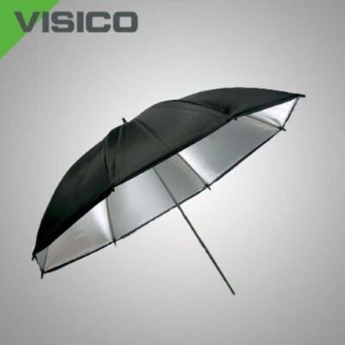 Zwart / zilver paraplu met een doorsnee van 90cm, geschikt voor flitssets van Visico. Een zwart-zilver paraplu is een paraplu die wordt gebruikt om gereflecteerd licht op een object te plaatsen. Het licht schijnt niet door de paraplu heen, omdat er om de zilveren paraplu een zwarte hoes zit